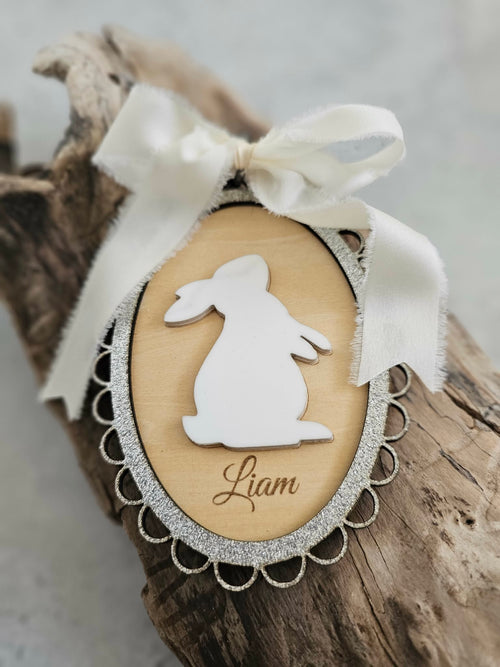 Påskeophæng i træ & akryl – personligt med navn